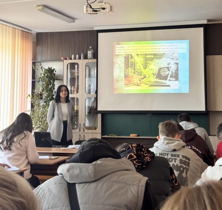 Під час заняття студенти ознайомилися з історією виникнення Інтернету, його значенням у сучасному суспільстві та роллю у формуванні інформаційного простору. Особливу увагу було приділено питанням безпеки в мережі: захисту персональних даних, створенню надійних паролів, розпізнаванню фейкової інформації та відповідальній поведінці онлайн.