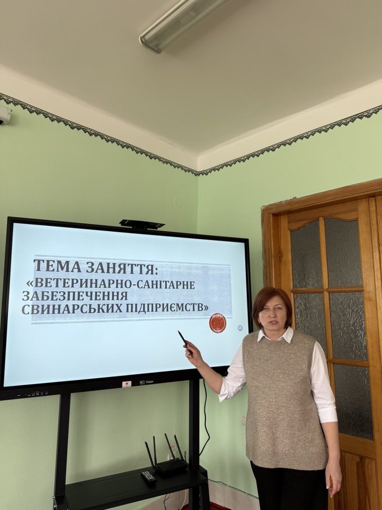 В рамках тижневика комісії технологічних дисциплін, викладачем Оксаною Сиротинською, в групі Т-31 було проведено відкрите заняття з освітнього компонента «Технологія виробництва продукції свинарства» на тему «Ветеринарно- санітарне забезпечення свинарських підприємств»