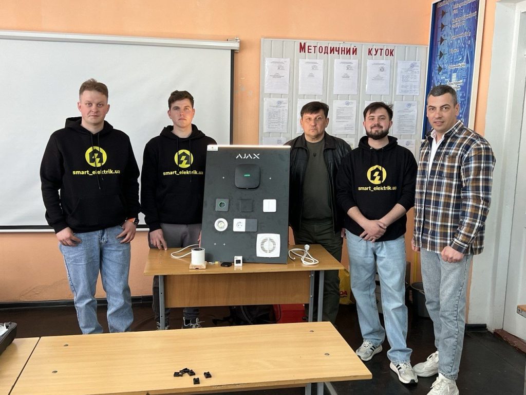 Разом із керівником компанії наші випускники показали здобувачам освіти майбутнє галузі: сучасний електромонтаж та системи «Smart Home», роботу інтегрованих систем безпеки Ajax, професійне обладнання в дії.